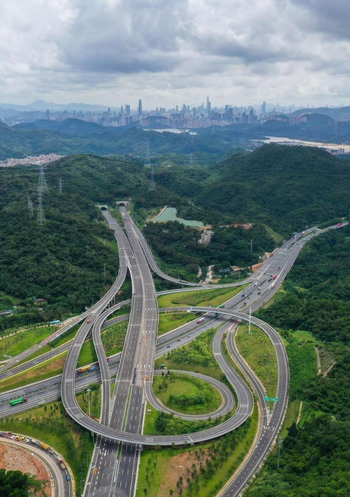 Aerial photo taken on June 17, 2022 shows an overpass of a highway passing through eastern areas in Shenzhen, south China's Guangdong Province. (Xinhua/Liu Dawei)