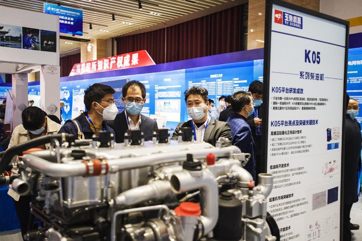 A diesel engine is displayed at the 12th Guangxi Inventions Exhibition and Trade Fair held in south China's Guangxi Zhuang autonomous region, Dec. 13, 2022. (People's Daily Online/Zhao Jingwu)