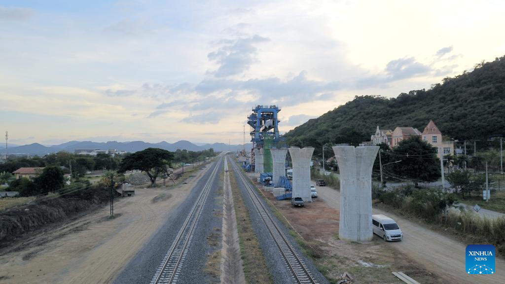 This aerial photo taken on Nov. 10, 2022 shows a construction site of the China-Thailand railway in Nakhon Ratchasima province, Thailand. (Xinhua/Wang Teng)