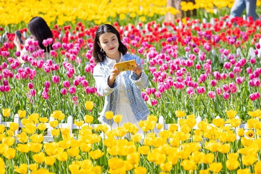 A visitor takes photos in the Nanjing Botanical Garden, March 13, 2023. (People's Daily Online/Su Yang)
