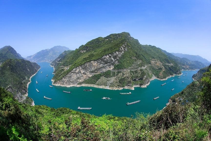 Vessels navigate along the Yangtze River in Quyuan township, Zigui county, Yichang, central China's Hubei province, April 16, 2023. (People's Daily Online/Wei Qiyang)
