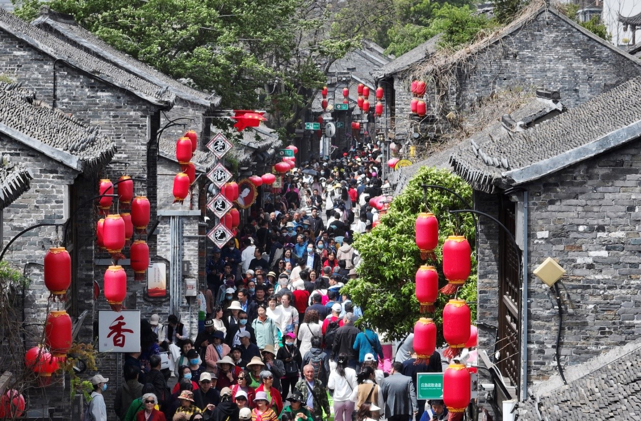 People visit a tourist site in Yangzhou, east China's Jiangsu province, April 12, 2023. (People's Daily Online/Meng Delong)