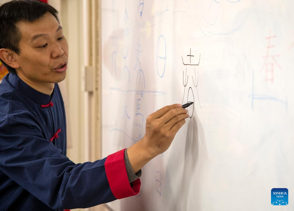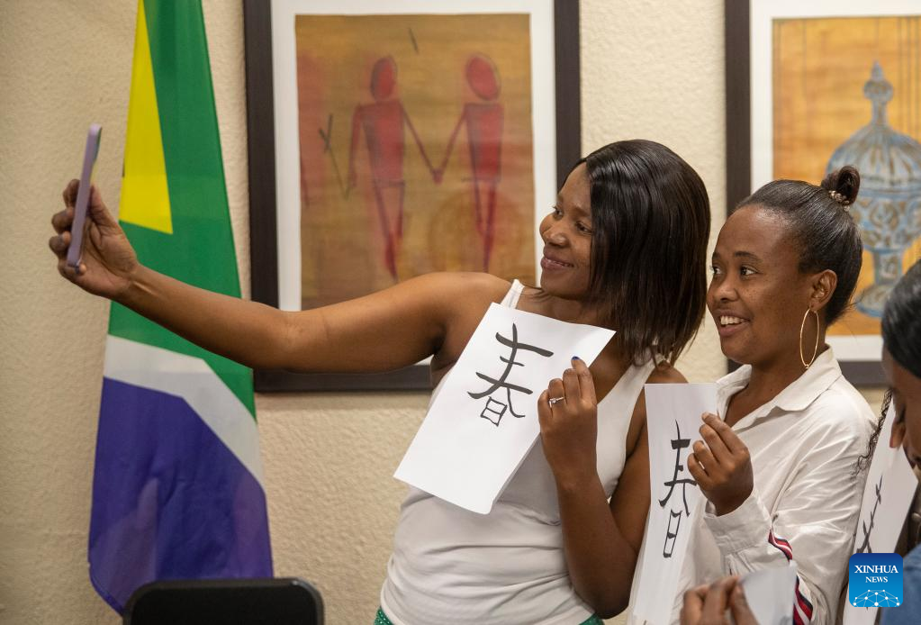 A teacher gives a lesson during an event celebrating the upcoming UN Chinese Language Day at the Confucius Institute at the University of Johannesburg in Johannesburg, South Africa, on April 19, 2023. (Xinhua/Zhang Yudong)