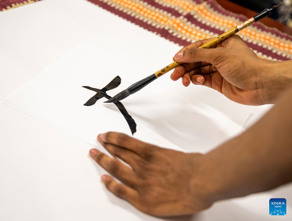 A student writes Chinese calligraphy during an event celebrating the upcoming UN Chinese Language Day at the Confucius Institute at the University of Johannesburg in Johannesburg, South Africa, on April 19, 2023. (Xinhua/Zhang Yudong)