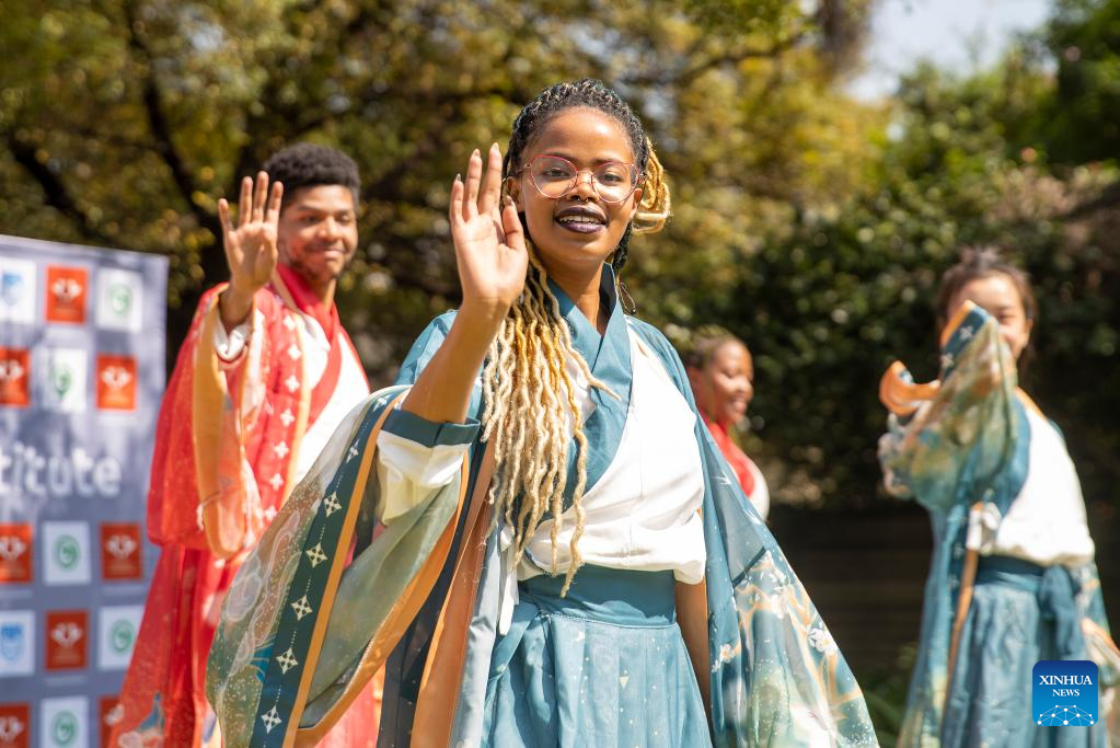 Students perform dancing during an event celebrating the upcoming UN Chinese Language Day at the Confucius Institute at the University of Johannesburg in Johannesburg, South Africa, on April 19, 2023. (Xinhua/Zhang Yudong)