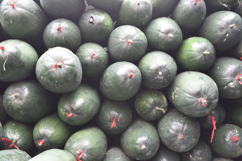Photo shows neatly piled wax gourds. (Photo/Lin Xiaodan)