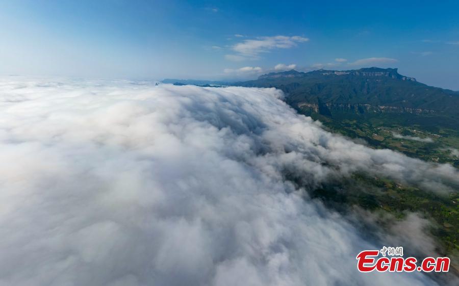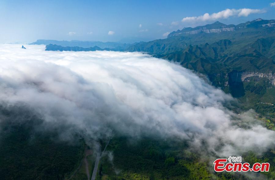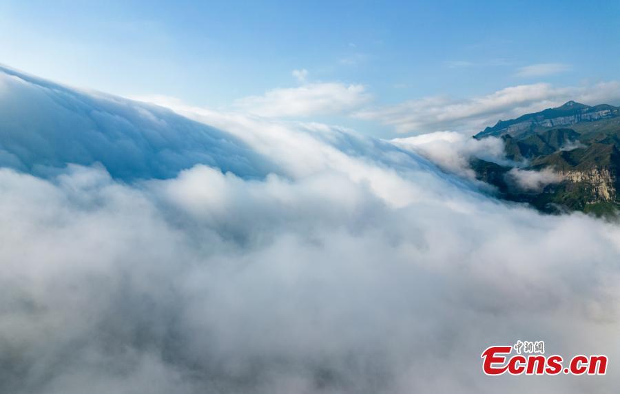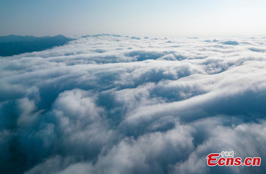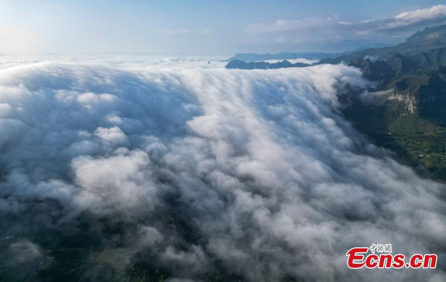 Clouds cascade over Jinfo Mountain, a World Natural Heritage site, after rain in Chongqing, April 19, 2023. (Photo: China News Service/Luo Chuan)