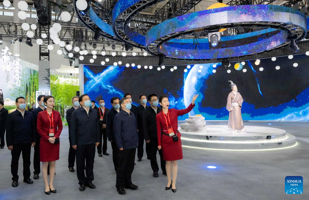 Li Shulei, a member of the Political Bureau of the Communist Party of China (CPC) Central Committee and head of the Publicity Department of the CPC Central Committee, visits an exhibition of the 2nd China (Wuhan) Culture and Tourism Expo in Wuhan, central China's Hubei Province, April 22, 2023. The 2nd China (Wuhan) Culture and Tourism Expo opened Saturday in Wuhan. (Xinhua/Zhai Jianlan)