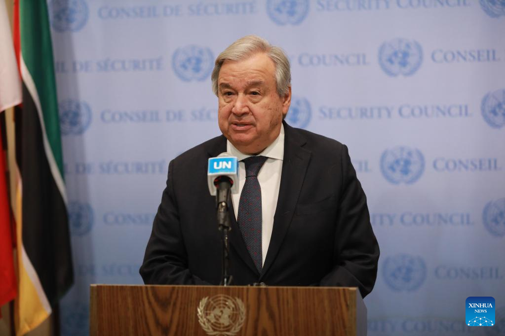 UN Secretary-General Antonio Guterres speaks to reporters on calling for a three-day ceasefire in Sudan at the UN headquarters in New York, on April 20, 2023. Guterres on Thursday called for a three-day ceasefire in Sudan to allow trapped civilians to flee. (Xinhua/Xie E)
