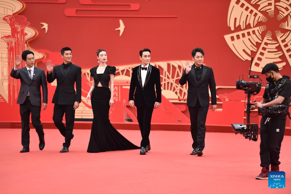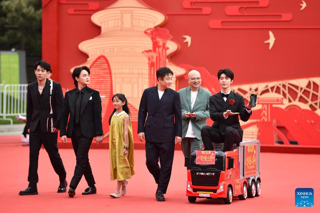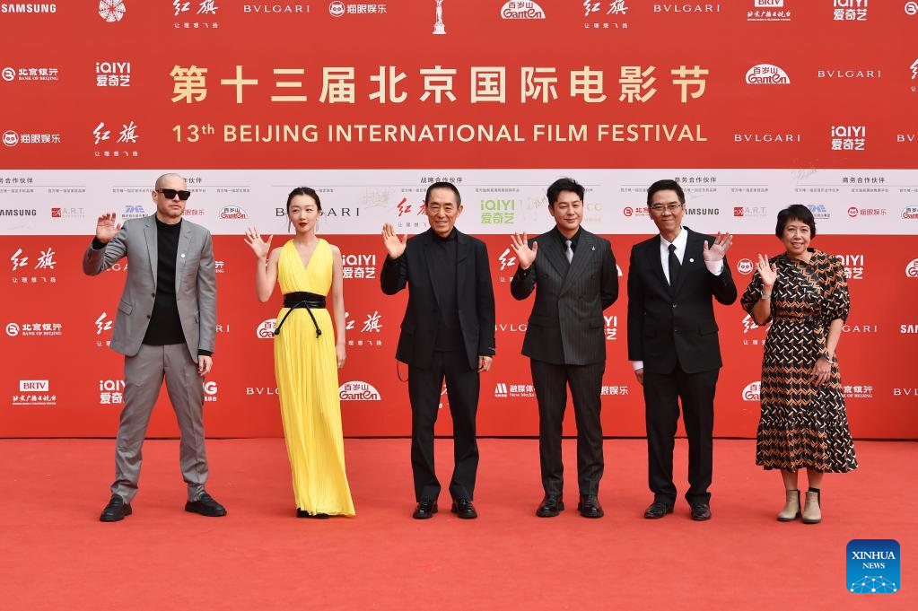 Cast members of the film "Godspeed" walk on the red carpet of the 13th Beijing International Film Festival in Beijing, capital of China, April 21, 2023. (Xinhua/Chen Zhonghao)