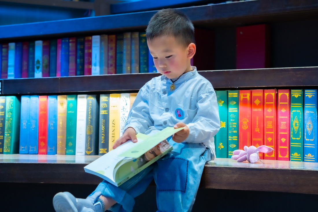 A boy reads at a book store in Guiyang, capital of southwest China's Guizhou Province, April 20, 2023. (People's Daily Online/Yang Qian )
