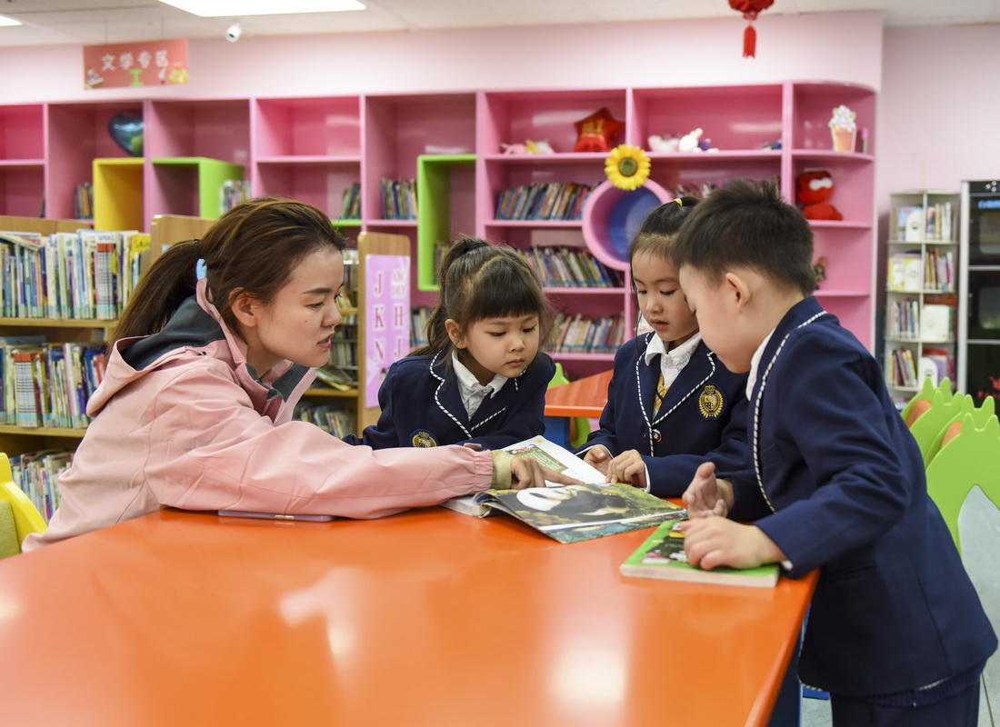 A woman teaches children to read at the Heilongjiang Provincial Library in northeast China's Heilongjiang Province, April 20, 2023. (People's Daily Online/Zhang Zhexin)