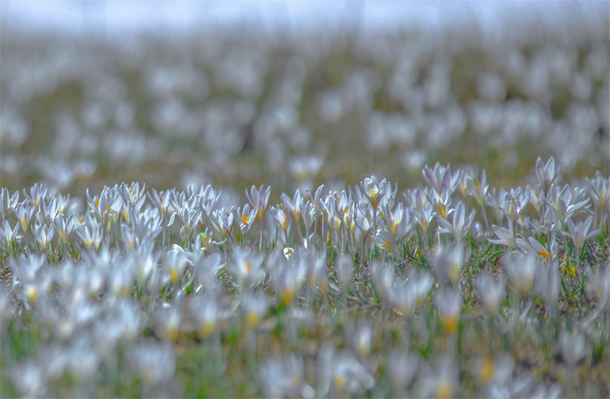 Photo shows a gorgeous sea of flowers of Crocus alatavicus in the Nalati grasslands in the Ili Kazak Autonomous Prefecture, northwest China's Xinjiang Uygur Autonomous Region. (Photo/Yang Xiaoqian)