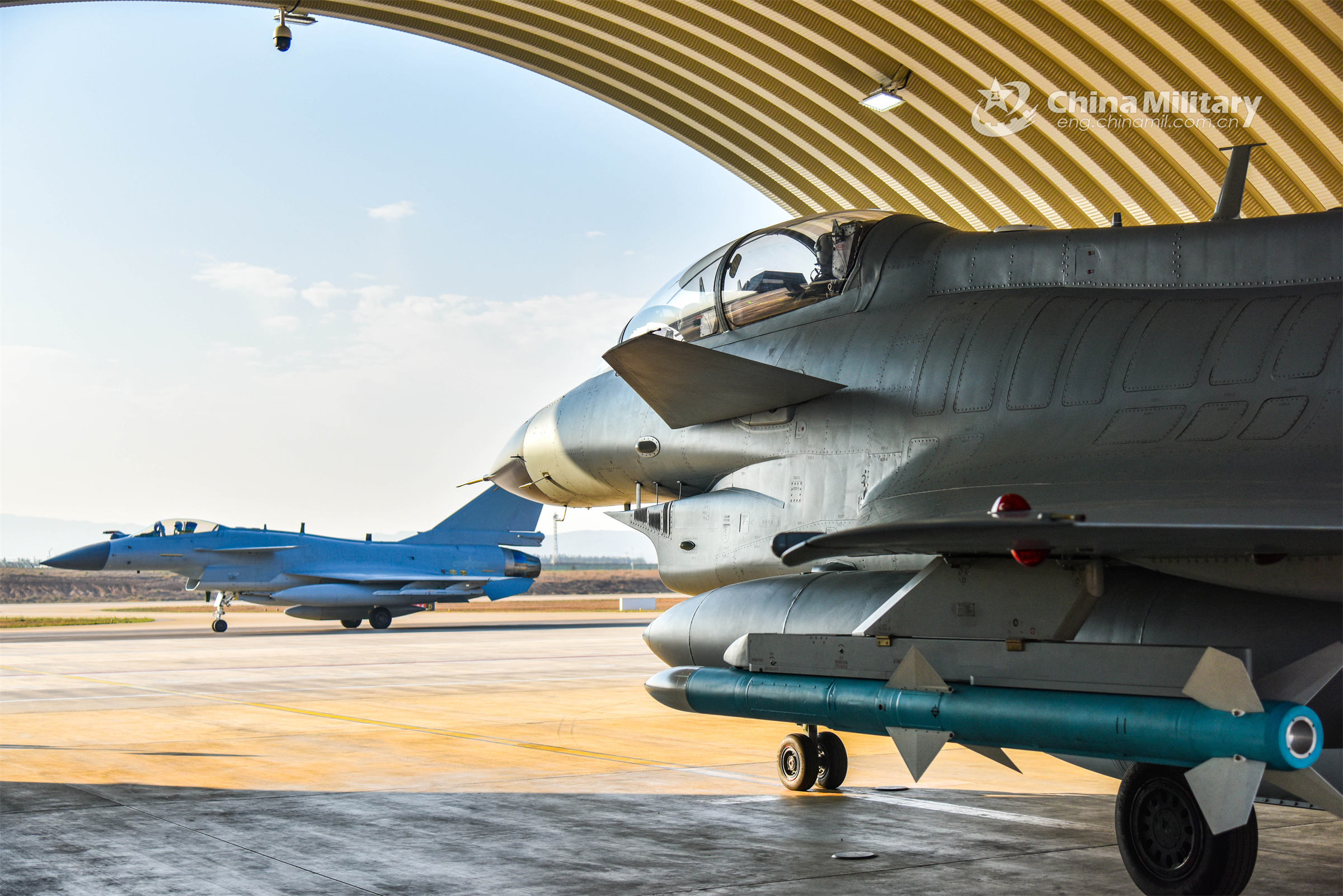 A fighter jet attached to a brigade of the air force under the PLA Southern Theater Command sits in the hangar waiting for taxi-out during a flight training exercise on April 3, 2023. (eng.chinamil.com.cn/Photo by Shang Jieyan)