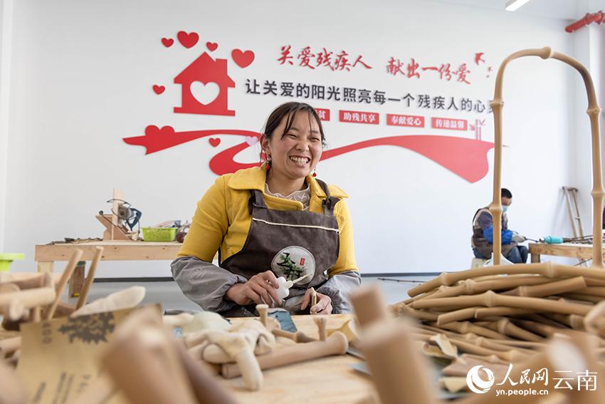 At a workshop in Daguan county, Zhaotong city, southwest China's Yunnan Province, 32-year-old Chen Yuanxian and her eight colleagues, all of whom are people with disabilities, were busy making bamboo handiworks.