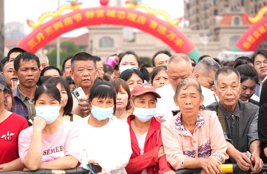Citizens and tourists watch performances at the Sanyuesan Cultural and Tourism Festival in Wuming district, Nanning city, south China's Guangxi Zhuang Autonomous Region. (Photo/Ma Xin)