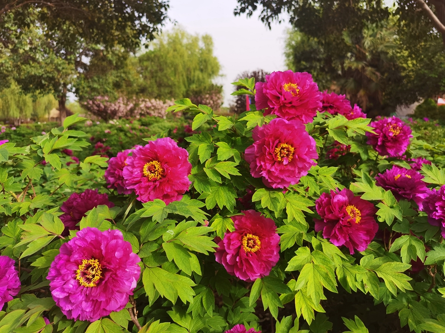 Photo taken on April 11, 2023 shows blooming peony flowers in a sketching area in Pingle village, Mengjin district, Luoyang city, central China's Henan Province. (People's Daily Online/Du Mingming) |