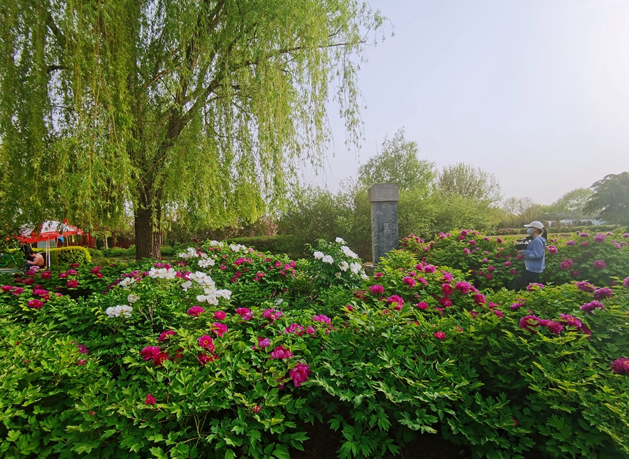 Photo taken on April 11, 2023 shows blooming peony flowers in a sketching area in Pingle village, Mengjin district, Luoyang city, central China's Henan Province. (People's Daily Online/Du Mingming) |