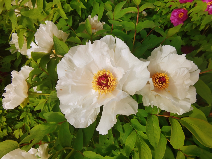 Photo taken on April 11, 2023 shows blooming peony flowers in a sketching area in Pingle village, Mengjin district, Luoyang city, central China's Henan Province. (People's Daily Online/Du Mingming) |