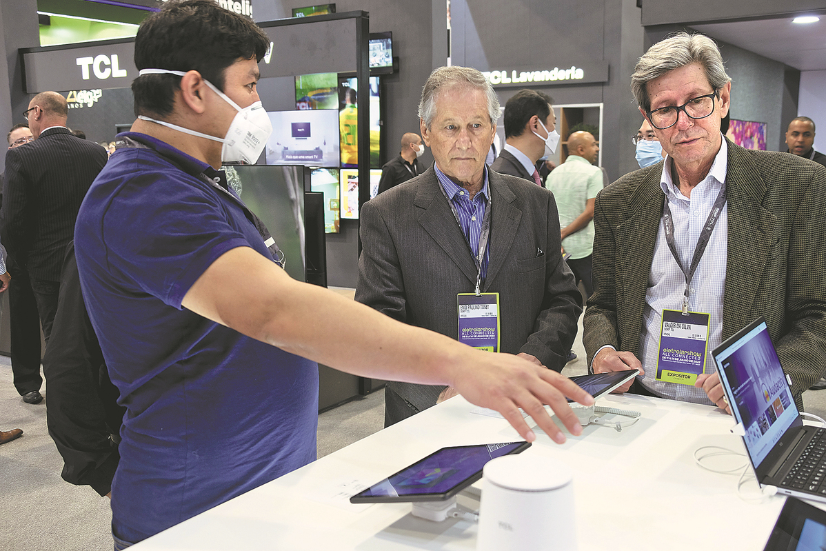 A staff member at Chinese electronics giant TCL introduces products to visitors at an expo in Sao Paolo, Brazil. CHEN HAOQUAN/XINHUA
