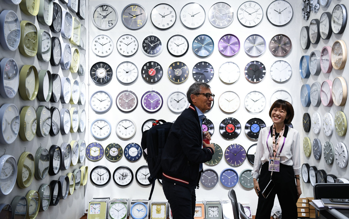 A visitor and an exhibitor negotiate business deals at the Clocks, Watches &Optical Instruments exhibition section of the second phase of Canton Fair in Guangzhou of Guangdong province, April 23, 2023. [Photo/Xinhua]