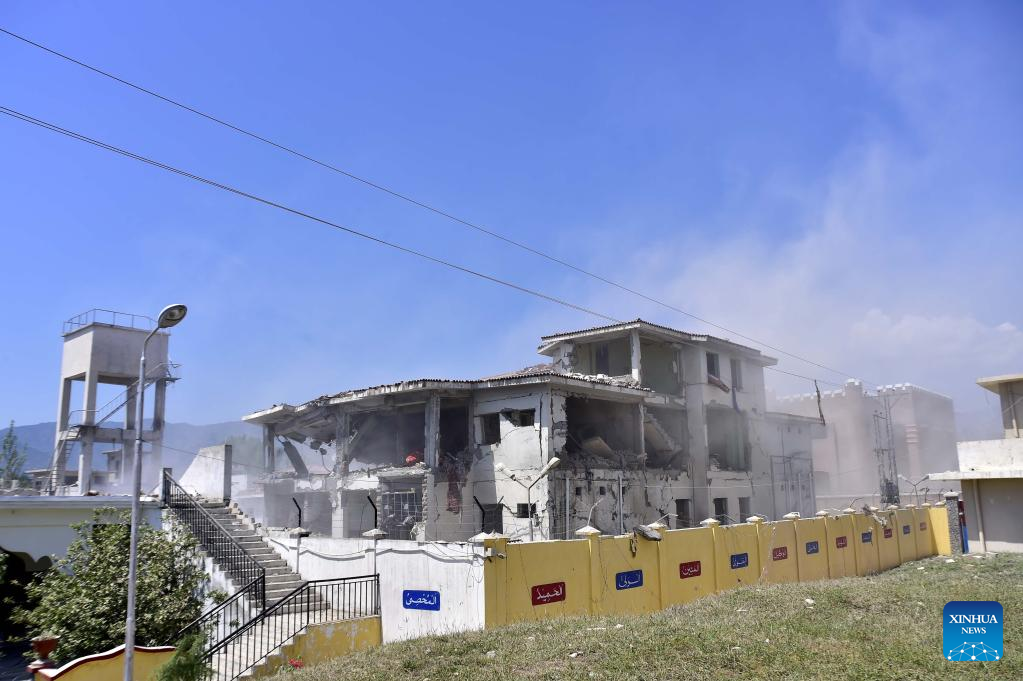 Damaged buildings of the Counter Terrorism Department (CTD) police station are seen following twin explosions in Swat, Pakistan, on April 25, 2023. The death toll from Monday's twin explosions in a police station in Swat district of the northwestern Khyber Pakhtunkhwa (KP) province rose to 17 on Tuesday, with at least 70 others injured, health and police officials said. (Photo by Saeed Ahmad/Xinhua)