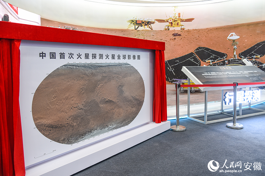 An image of Mars from China's first Mars exploration mission is on display at a thematic exhibition to mark the eighth Space Day of China held in Hefei city, capital of east China's Anhui Province. The image was released for the first time at the exhibition. (People's Daily Online/Li Ximeng)