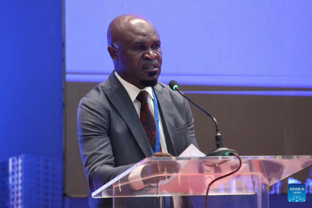 Fortunatus Mhambe, director of export promotion with the Tanzania Trade Development Authority (TanTrade), speaks at a one-day China-Tanzania Economic and Trade Conference at the Julius Nyerere International Convention Center in Dar es Salaam, Tanzania, April 25, 2023. (Photo by Herman Emmanuel/Xinhua)