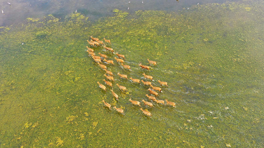 Yancheng city, known as an "international wetland city," has stepped up its efforts to restore and protect wetlands. Its three ecosystems, including the sea, wetlands and forests, have provided ideal habitats for milu deer, also known as Pere David's deer, red-crowned cranes and spoon-billed sandpipers, as well as many migratory birds.