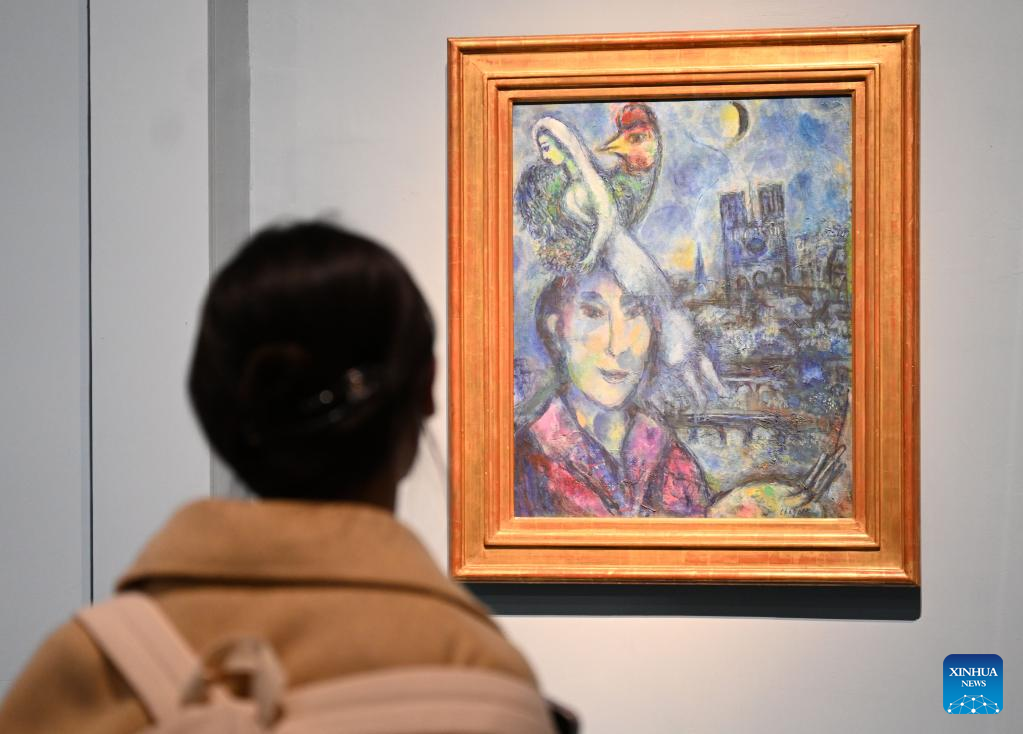 This photo taken on April 26, 2023 shows a self-portrait of Marc Chagall at the Self-Portrait Masterpieces from the Uffizi Galleries Collections at the National Museum of China in Beijing, capital of China. The Self-Portrait Masterpieces from the Uffizi Galleries Collections was opened to the public on Thursday at the National Museum of China in Beijing and will last until Sept. 10. (Xinhua/Jin Liangkuai)