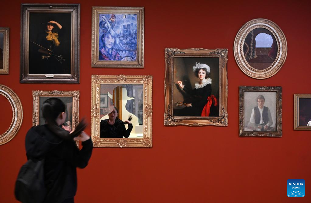A visitor is seen at the Self-Portrait Masterpieces from the Uffizi Galleries Collections at the National Museum of China in Beijing, capital of China, April 26, 2023. The Self-Portrait Masterpieces from the Uffizi Galleries Collections was opened to the public on Thursday at the National Museum of China in Beijing and will last until Sept. 10. (Xinhua/Jin Liangkuai)