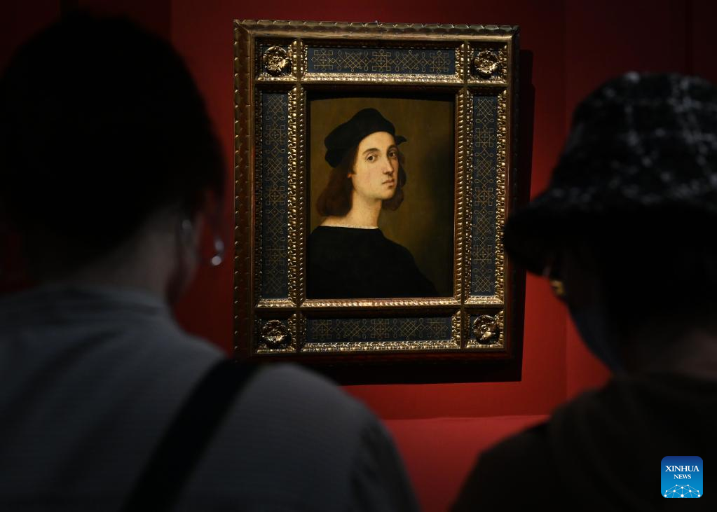 This photo taken on April 26, 2023 shows Raphael's Self-portrait at the Self-Portrait Masterpieces from the Uffizi Galleries Collections at the National Museum of China in Beijing, capital of China. The Self-Portrait Masterpieces from the Uffizi Galleries Collections was opened to the public on Thursday at the National Museum of China in Beijing and will last until Sept. 10. (Xinhua/Jin Liangkuai)