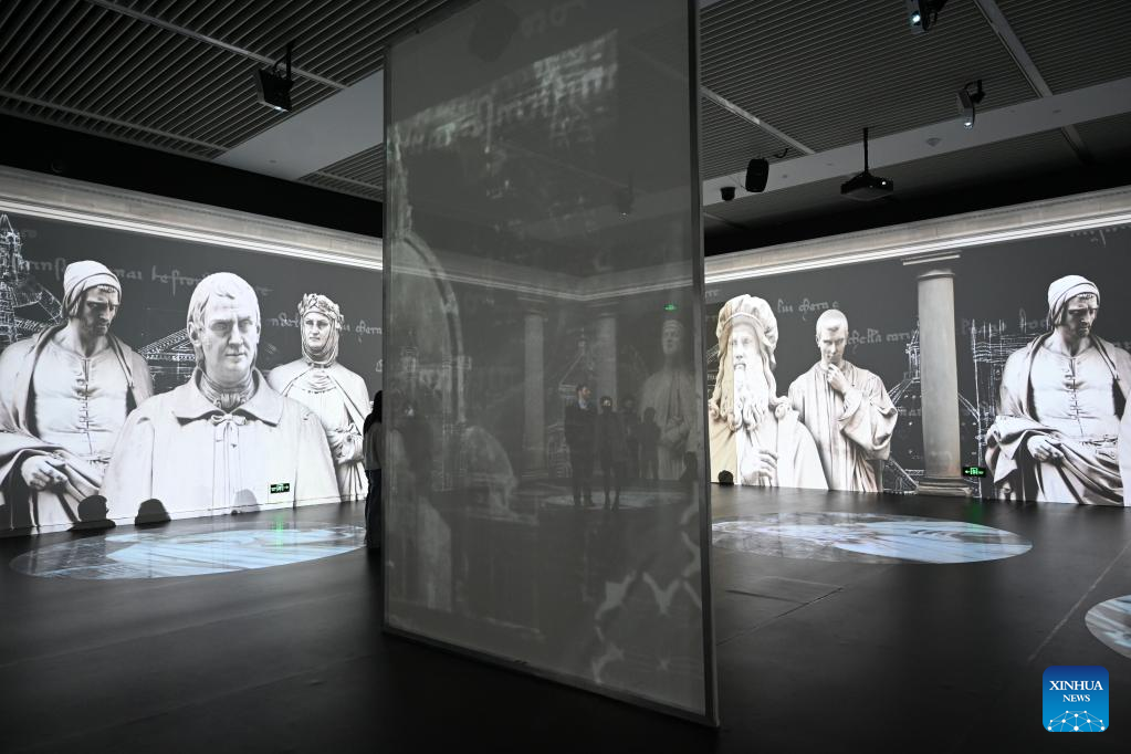 Visitors are seen at the Self-Portrait Masterpieces from the Uffizi Galleries Collections at the National Museum of China in Beijing, capital of China, April 26, 2023. The Self-Portrait Masterpieces from the Uffizi Galleries Collections was opened to the public on Thursday at the National Museum of China in Beijing and will last until Sept. 10. (Xinhua/Jin Liangkuai)