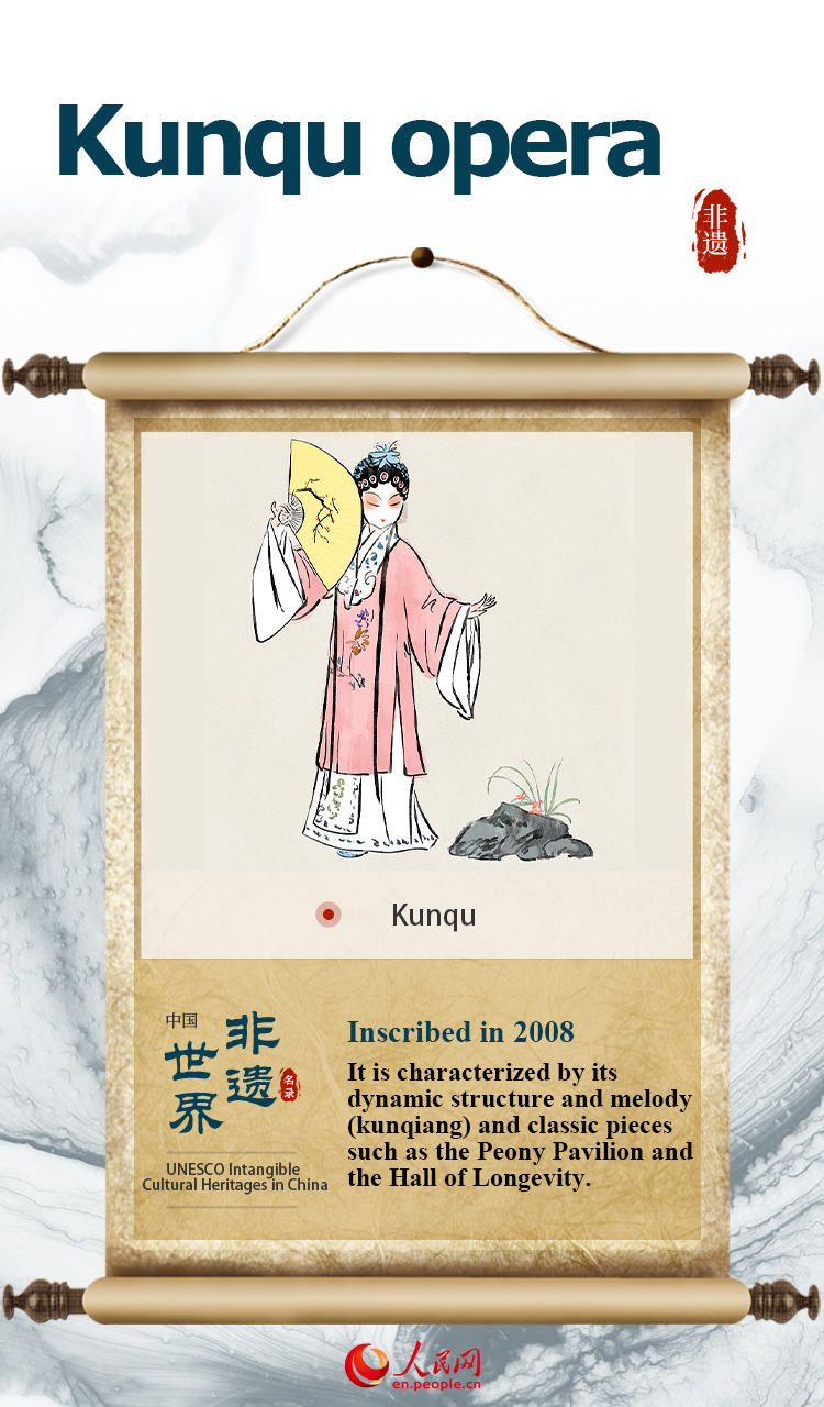 The item, "Kunqu opera" was inscribed on UNESCO's Representative List of the Intangible Cultural Heritage of Humanity in 2008.