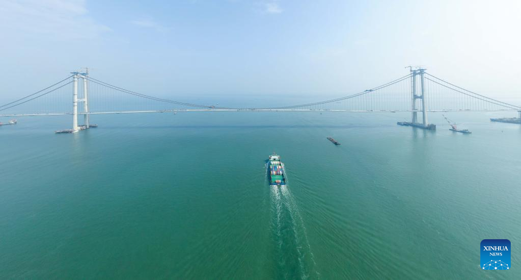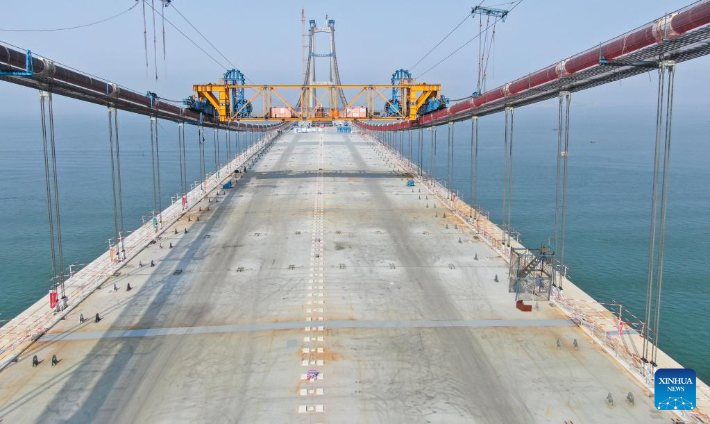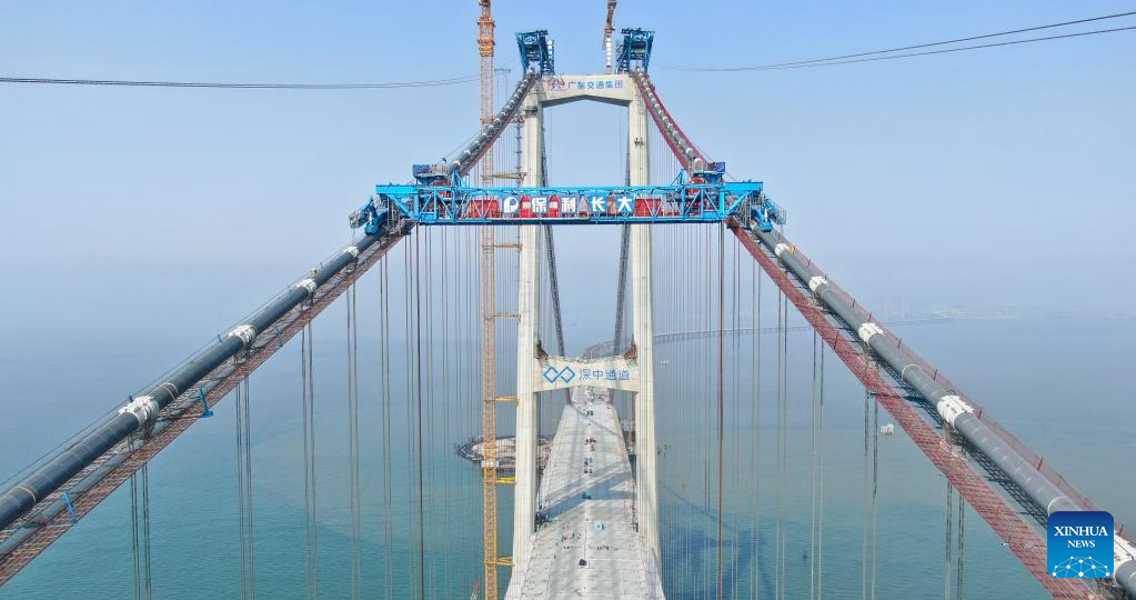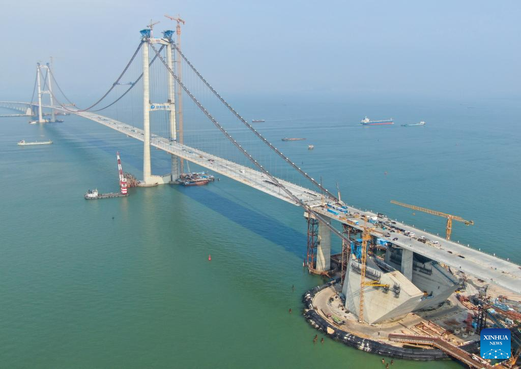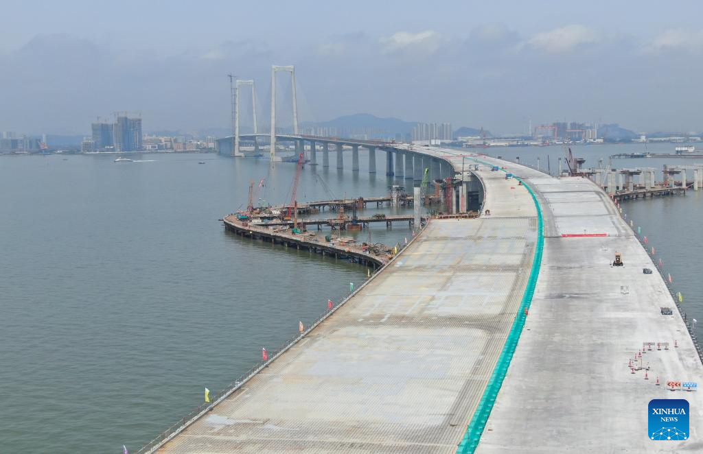 The bridge section of the link is about 17 kilometers long with eight lanes. With a total length of 24 kilometers, the project is expected to open to traffic in 2024. (Xinhua/Deng Hua)