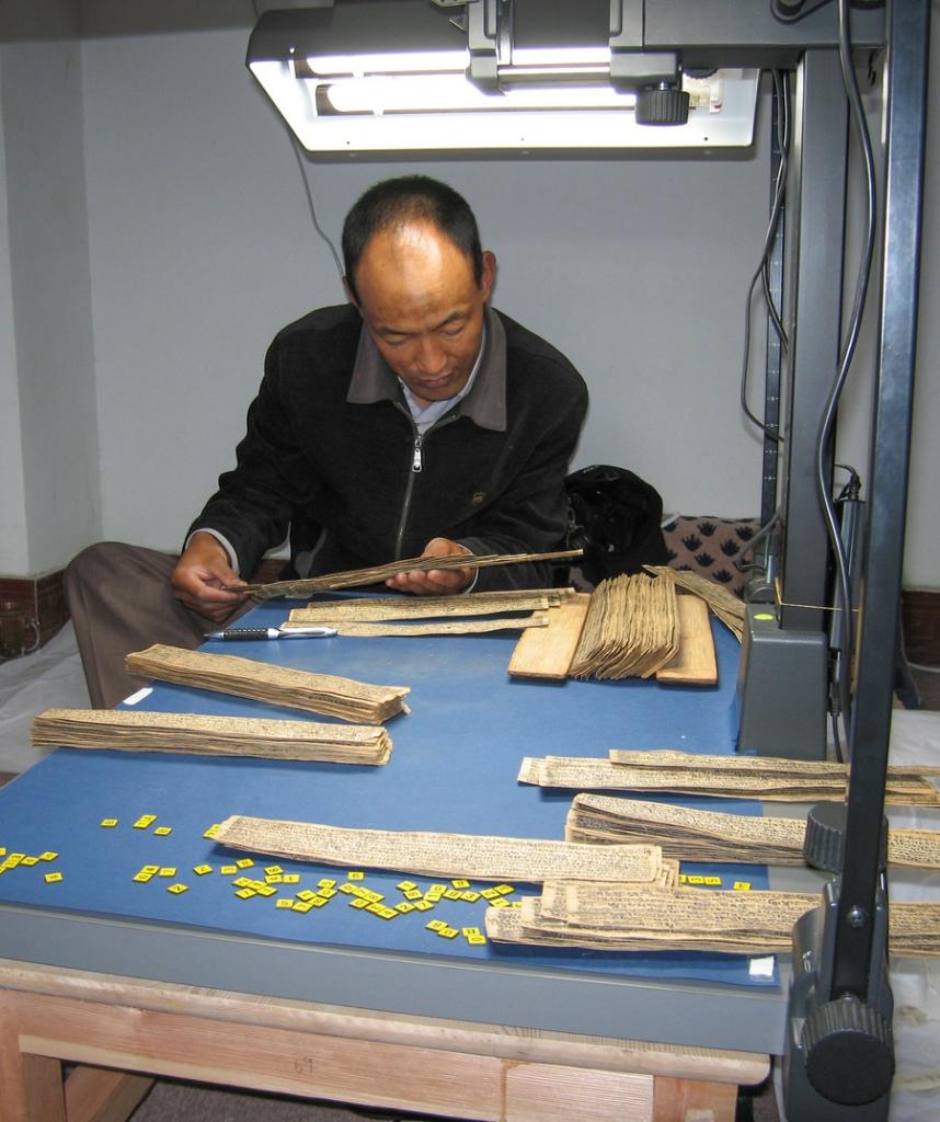 Craftsman preserves ancient palm-leaf manuscripts of Buddhist sutras in Tibet
