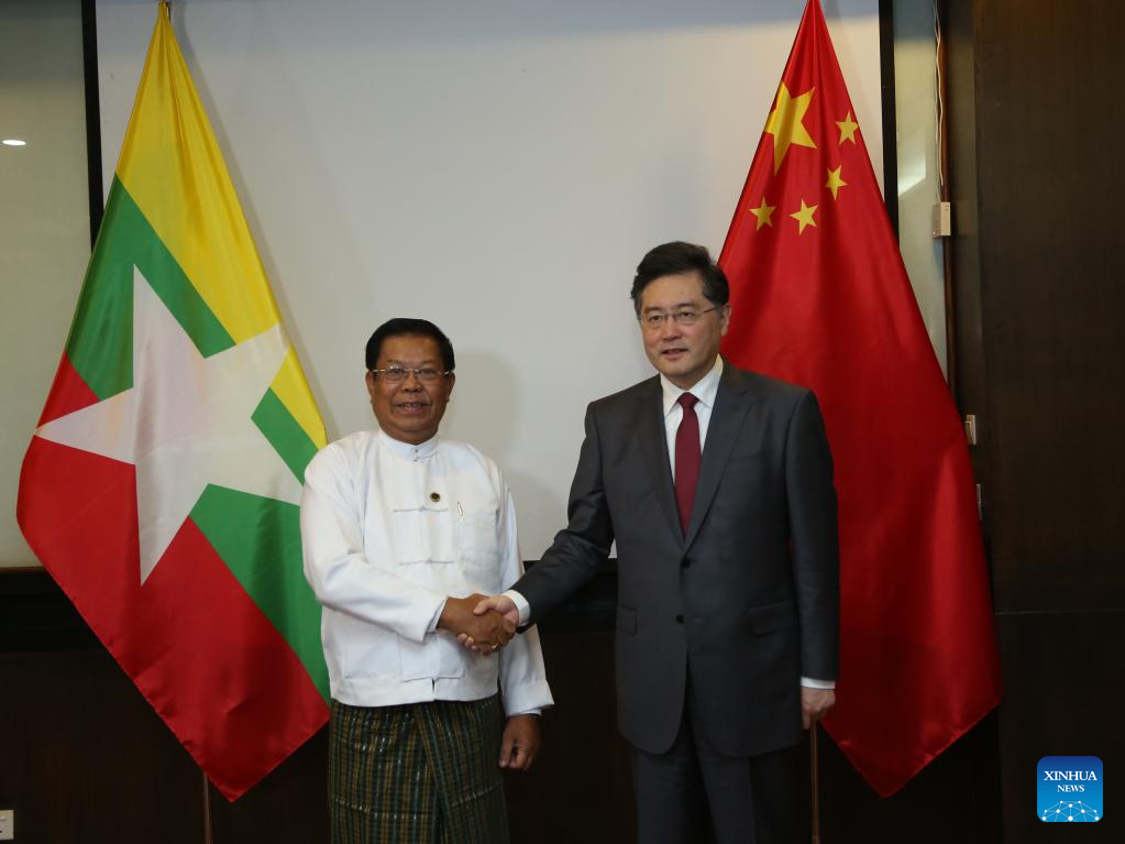 At a meeting with Myanmar leader Min Aung Hlaing in the Myanmar capital, Chinese State Councilor and Foreign Minister Qin Gang said China has attached great importance to its relations with Myanmar as the two neighbors share "Paukphaw" (fraternal) friendship.