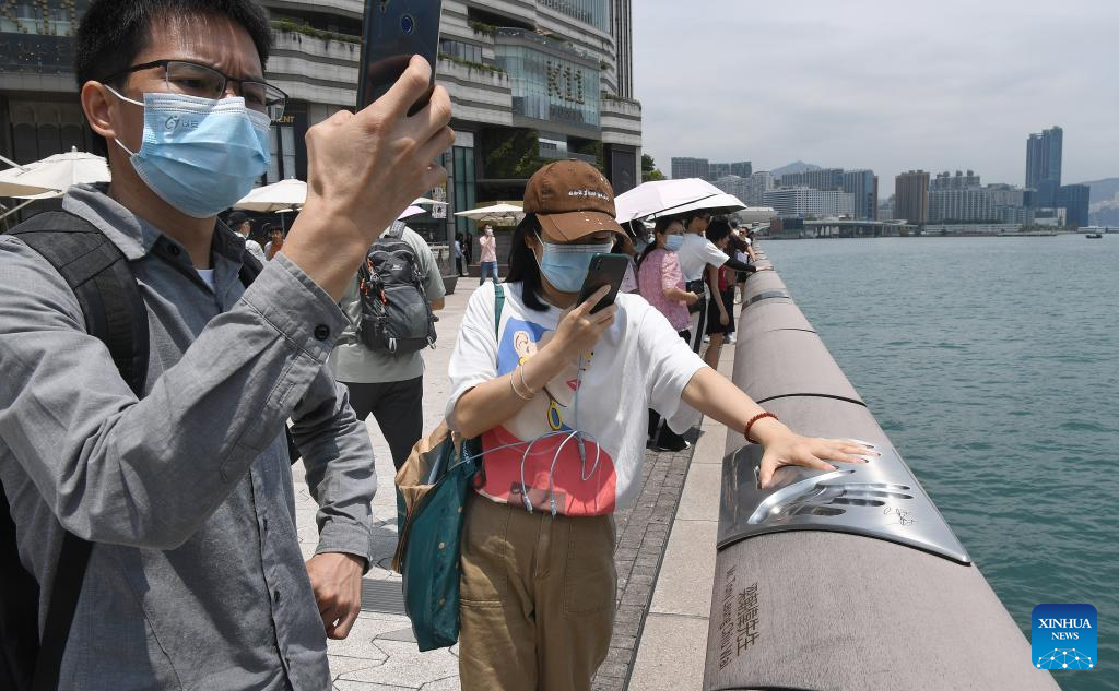 Tourists visit the Avenue of Stars in Hong Kong, south China, April 30, 2023. Hong Kong's economy grew by 2.7 percent year on year in the first quarter of 2023, reversing a four-quarter-long contraction last year, according to official data announced Tuesday. (Xinhua/Chen Duo)