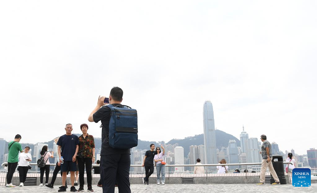 Tourists visit Tsim Sha Tsui in Hong Kong, south China, April 30, 2023. Hong Kong's economy grew by 2.7 percent year on year in the first quarter of 2023, reversing a four-quarter-long contraction last year, according to official data announced Tuesday. (Xinhua/Chen Duo)