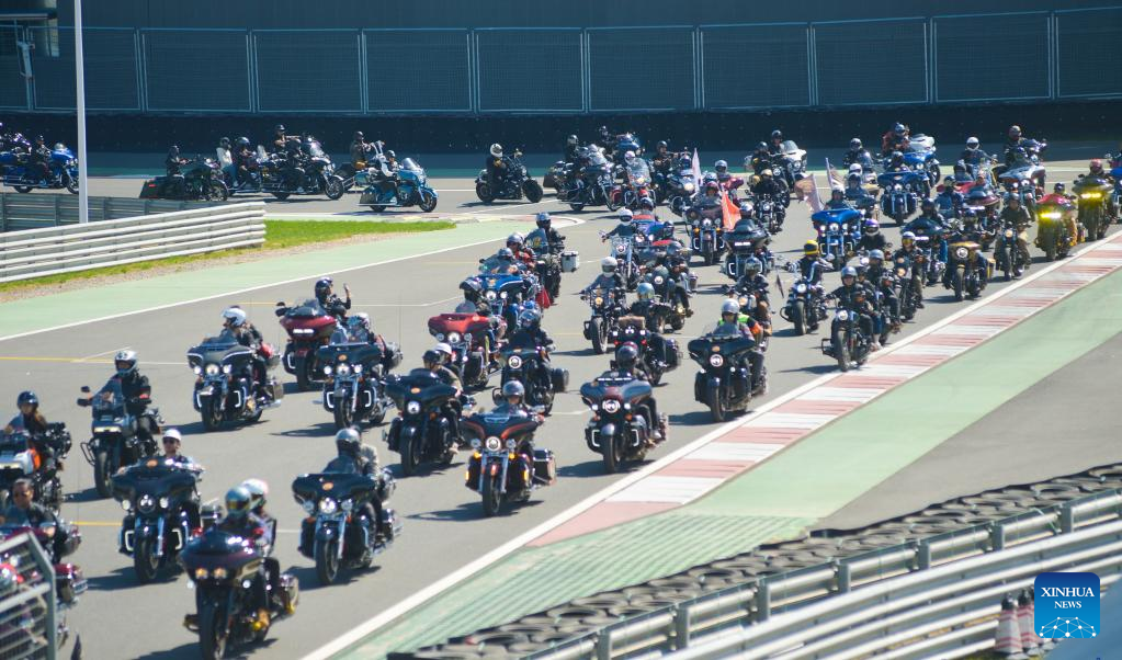 A racing carnival is held at the Florentia Village business district in north China's Tianjin on April 2, 2023. (Xinhua)