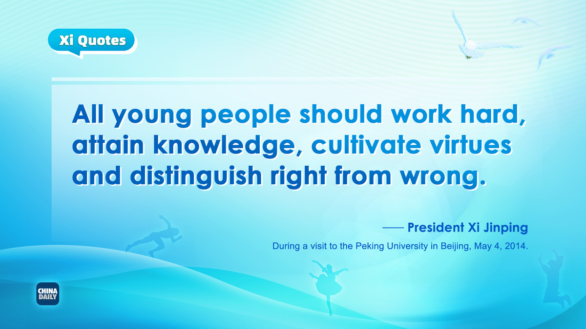China's Youth Day is celebrated on May 4 each year. President Xi Jinping has, on many occasions, shared his hopes and expectations on the young people. Here're some highlights of his remarks.
