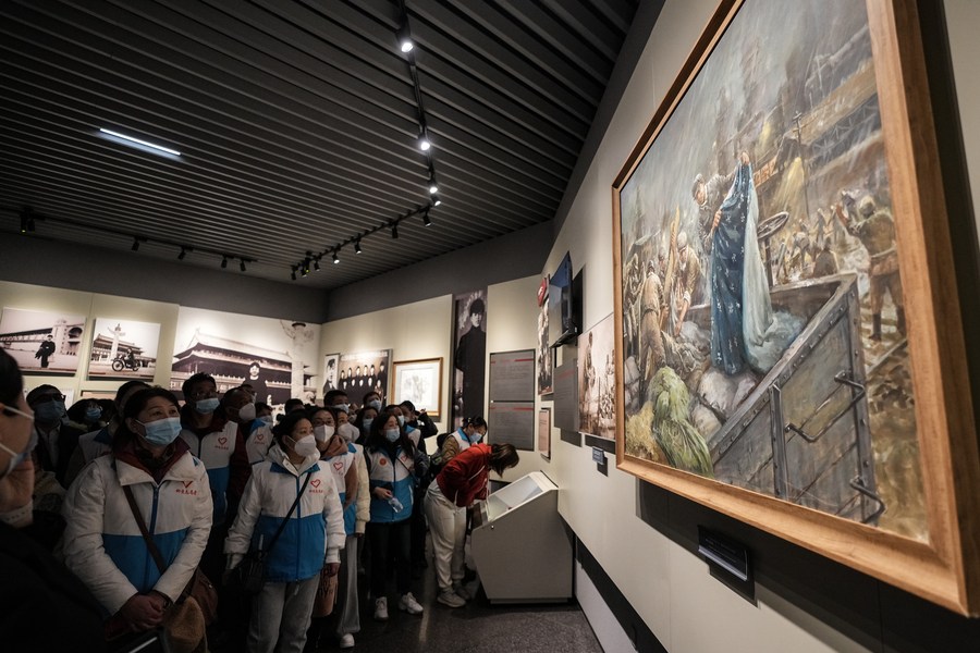 People visit the Lei Feng Memorial Hall in Fushun, northeast China's Liaoning Province, March 4, 2023. Many people visited the Lei Feng Memorial hall ahead of "Lei Feng Day", which falls on March 5 every year in remembrance of Lei Feng, a young soldier who embodied the spirit of self-sacrifice. (Xinhua/Pan Yulong)