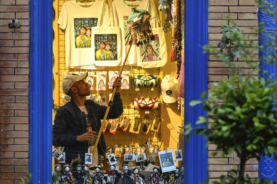 In 2018, after studying traditional Chinese medicine at a university in east China's Jiangxi Province for six years, Mewlan decided to go back to his hometown in northwest China's Xinjiang Uygur Autonomous Region and open a shop selling traditional artwork, ornaments, and souvenirs.