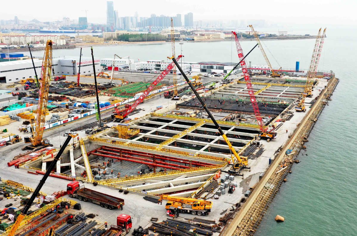Construction is underway at the second undersea tunnel in Qingdao, Shandong province, on April 20. With its main section measuring 15.89 kilometers, it is expected to be the world's longest undersea highway tunnel, the builders said. LI ZIHENG/XINHUA
