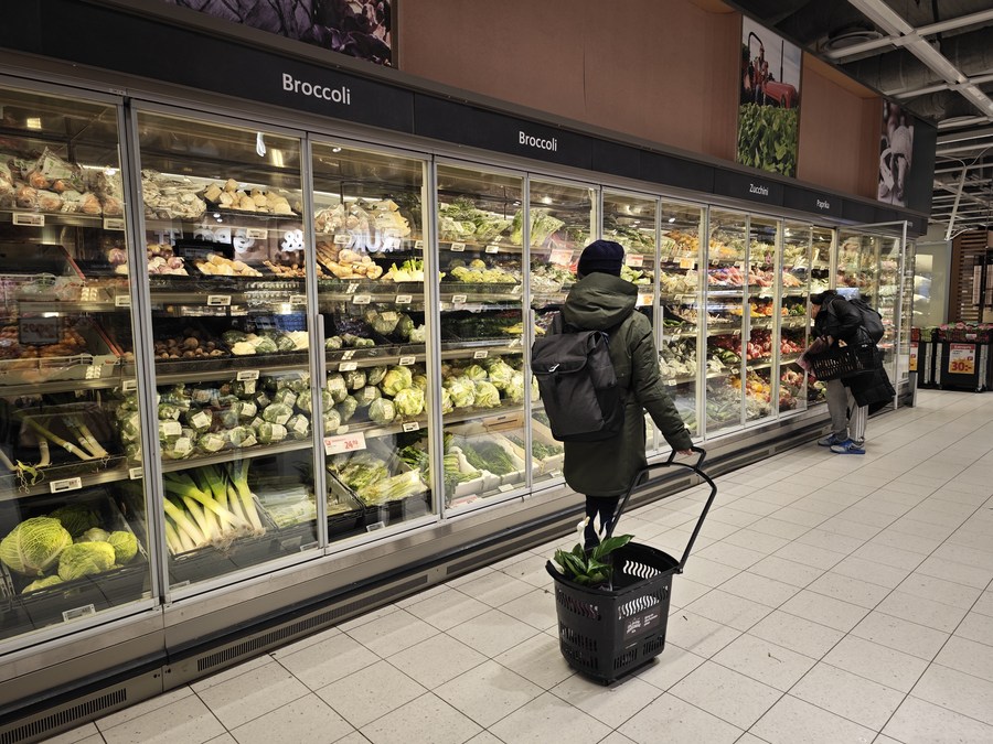 People shop at a store in Stockholm, Sweden, on Feb. 6, 2023. (Photo by Wei Xuechao/Xinhua)