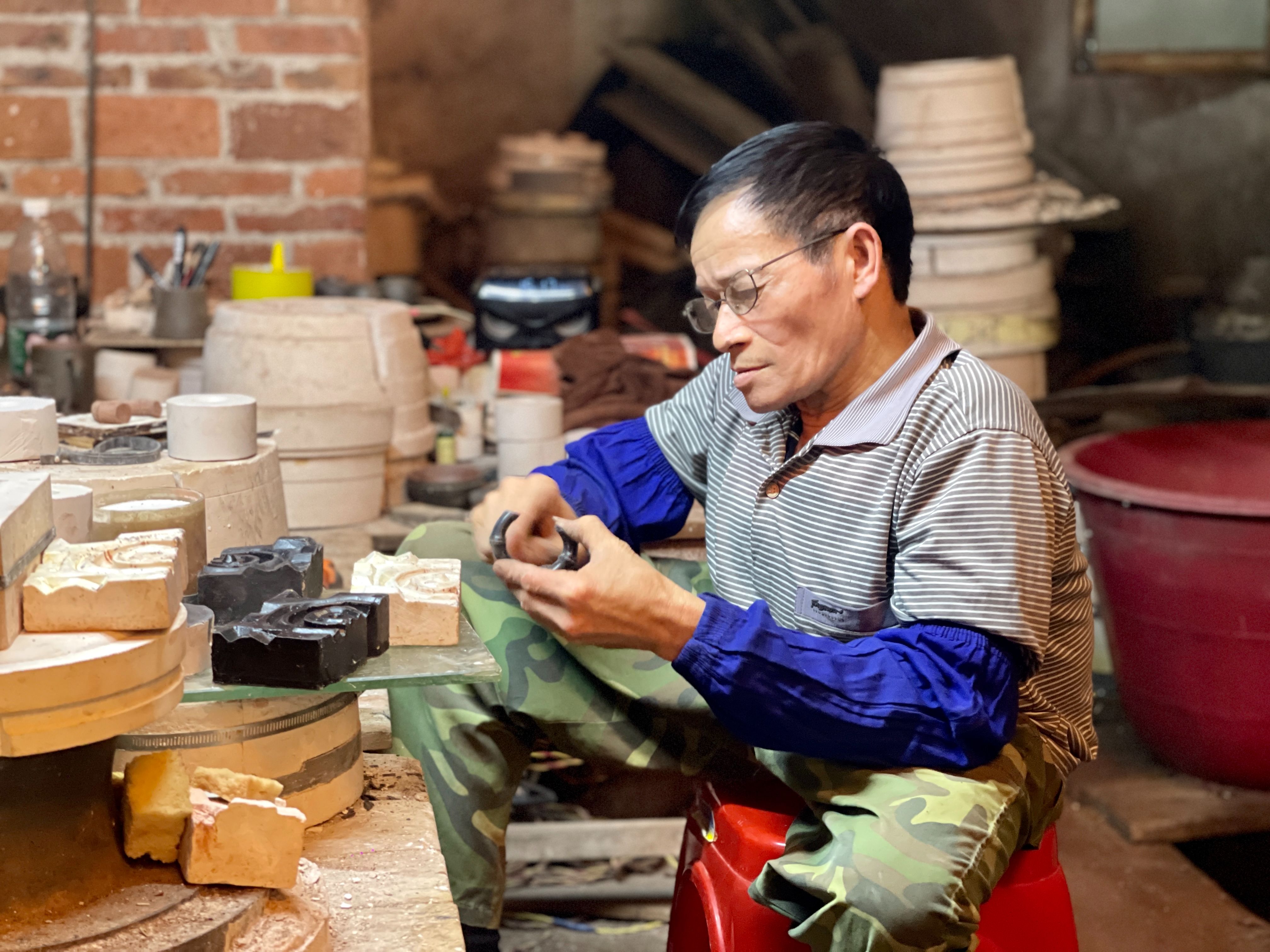 Disabled craftsman Lu Decheng produces a mould at a Nixing pottery workshop, one of China’s four famous potteries, in Qinzhou city, south China’s Guangxi Zhuang Autonomous Region. (People’s Daily Online/Zhou Jingyuan)