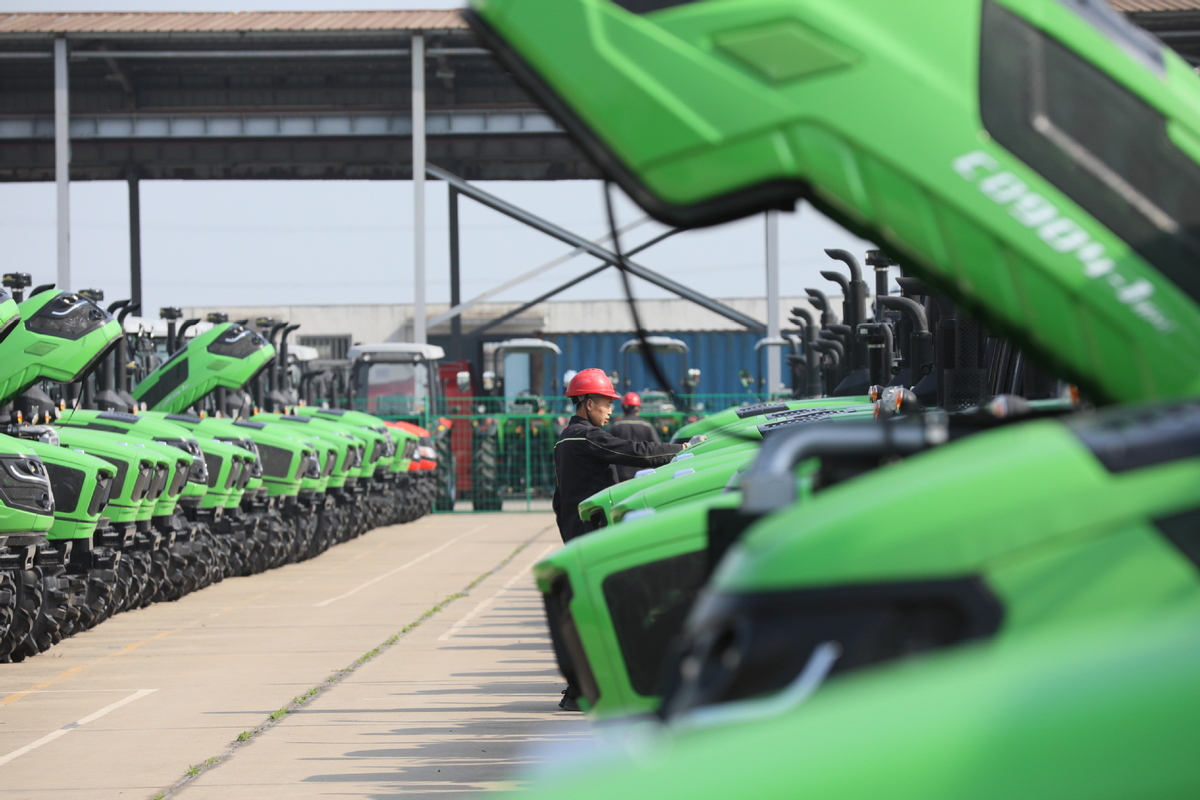 Workers check machinery for export at a manufacturer in Linyi, Shandong province, on April 26, 2023. [Photo/Xinhua]