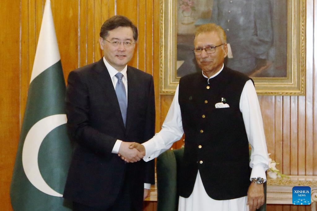 At a meeting with visiting Chinese State Councilor and Foreign Minister Qin Gang on Friday, Pakistani President Arif Alvi said the friendly relations between Pakistan and China are rooted in the profound traditional friendship between the two peoples.