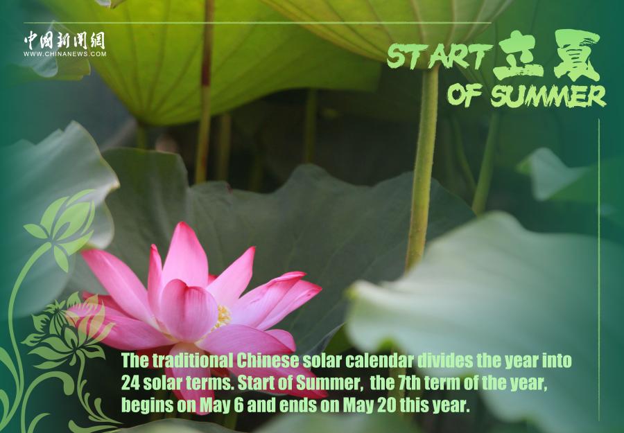 The traditional Chinese solar calendar divides the year into 24 solar terms. Start of Summer, the 7th term of the year, begins on May 6 and ends on May 20 this year.