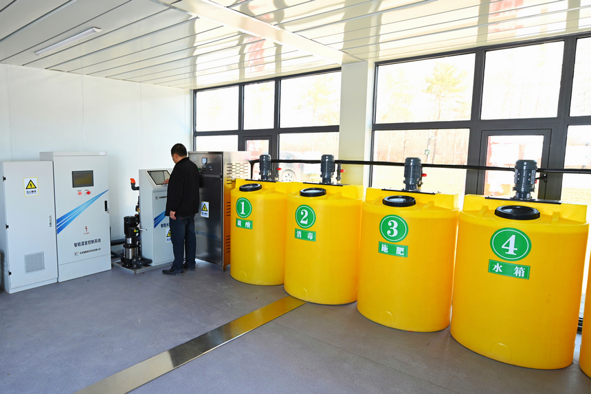 A smart seedling breeding base in a modern agriculture demonstration area of a farm company affiliated to Beidahuang Group's Baoquanling branch realizes automated and accurate monitoring of temperatures and humidity inside greenhouses, as well as automatically apply fertilizers and spray pesticides. (Photo/Xu Lei)